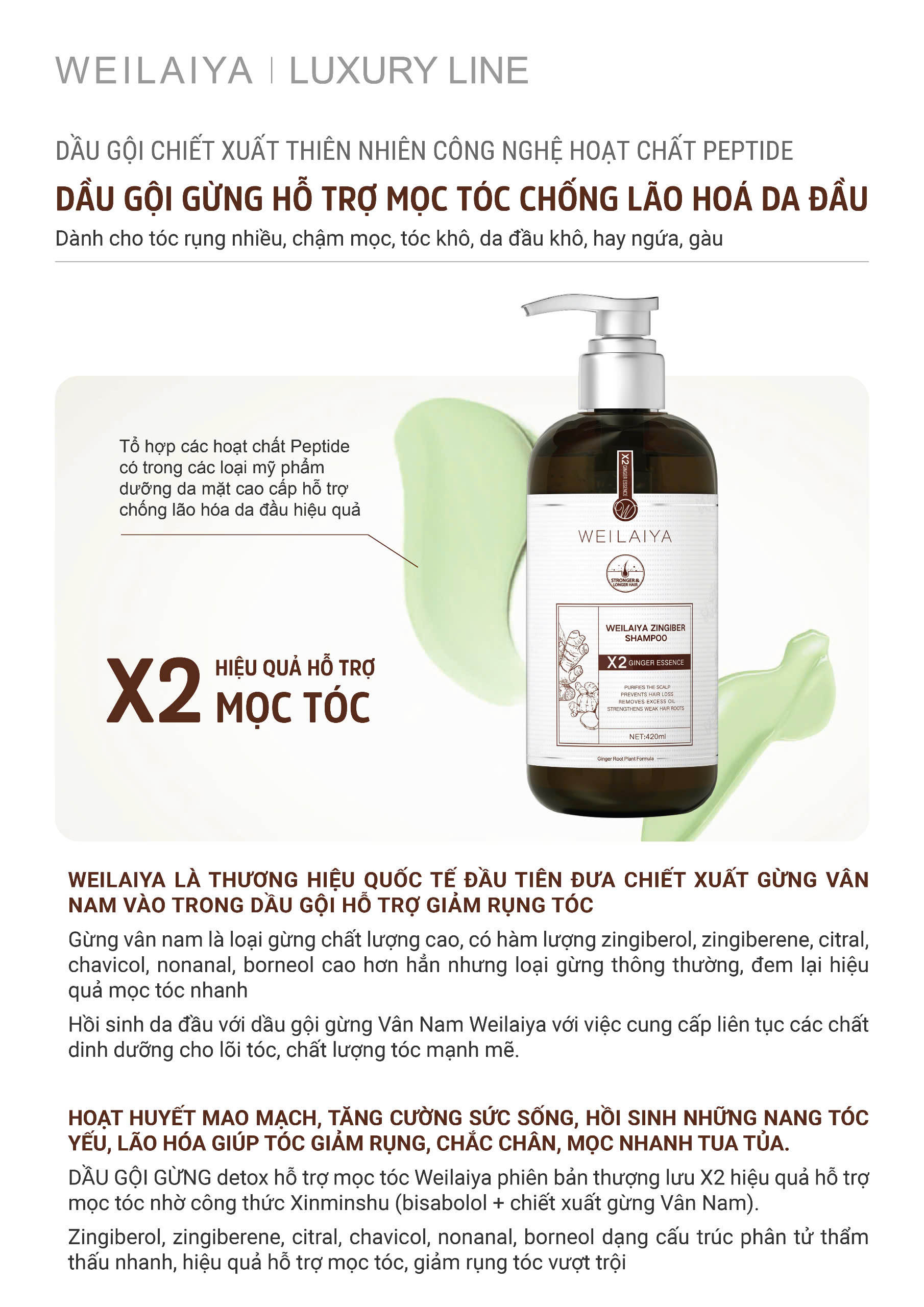 Dầu gội gừng là dòng dầu gội đã tạo nên tên tuổi Weilaiya tại thị trường Việt Nam.