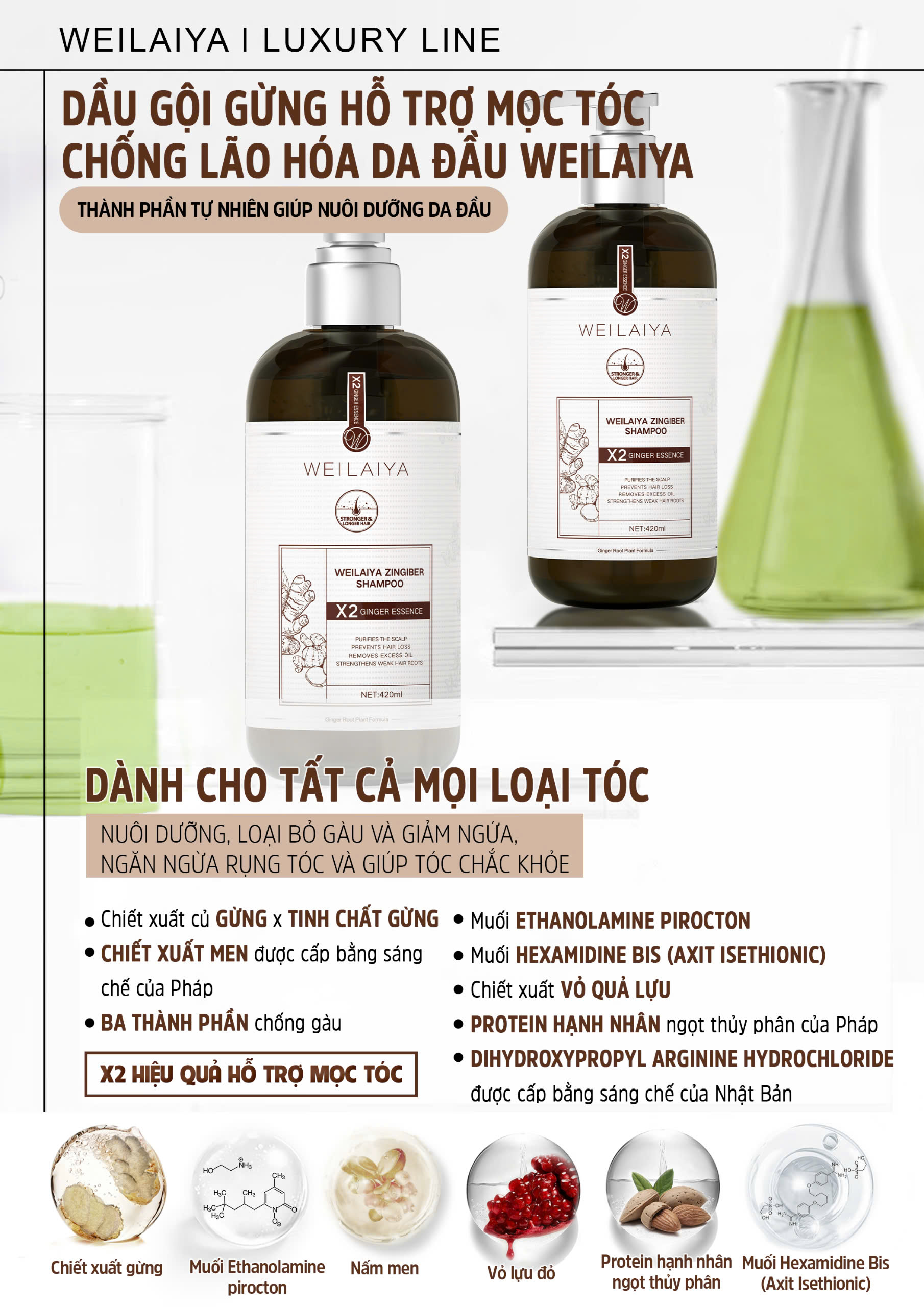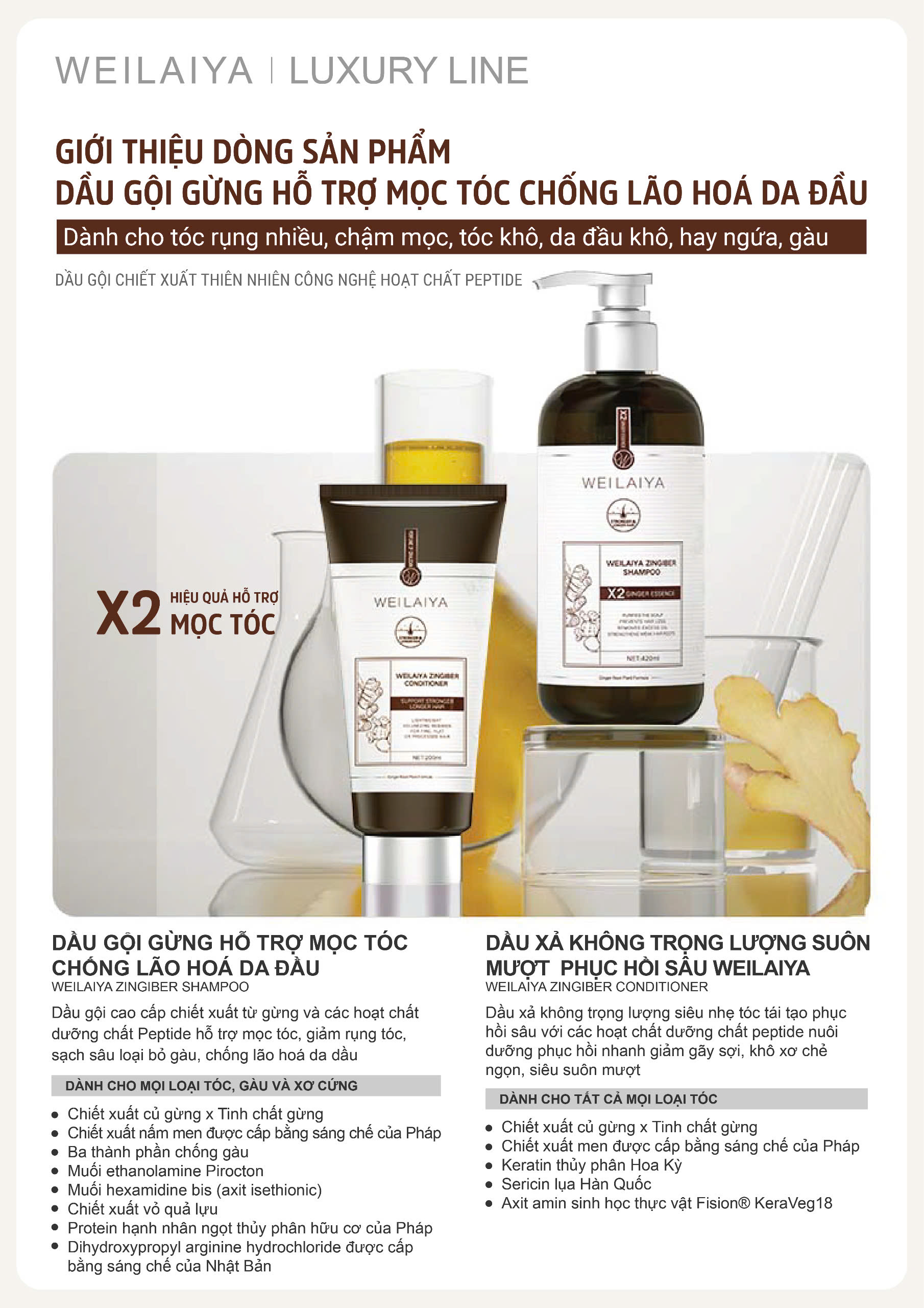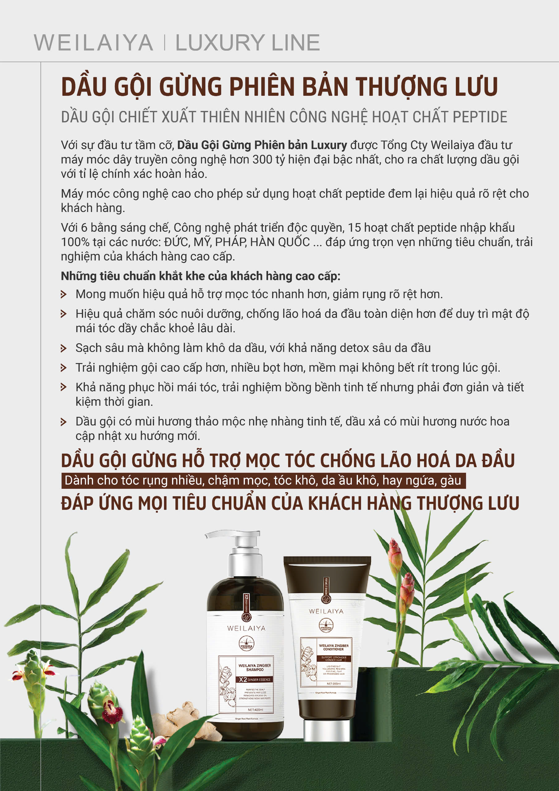 Một lần nữa Weilaiya sẽ tiếp tục tạo ra sự đột phá lớn, dẫn dầu xu hướng bằng Dầu Gội Gừng Phiên Bản Luxury.