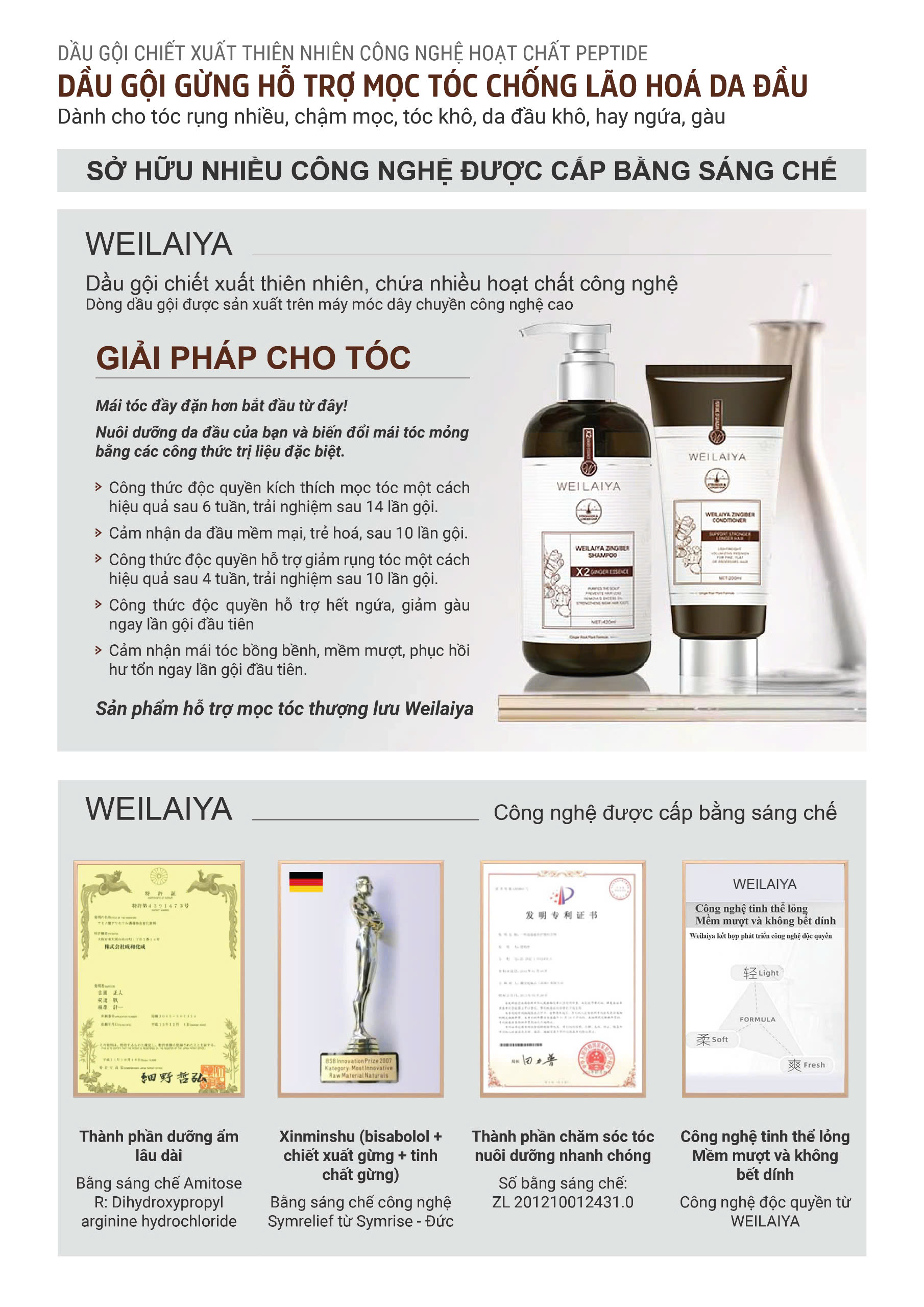 Dầu gội gừng Weilaiya tự hào là thương hiệu đẩy mạnh mẽ ngành dầu gội chiết xuất thiên nhiên tại phân khúc thị trường tầm trung, tạo ra xu hướng đi đầu.