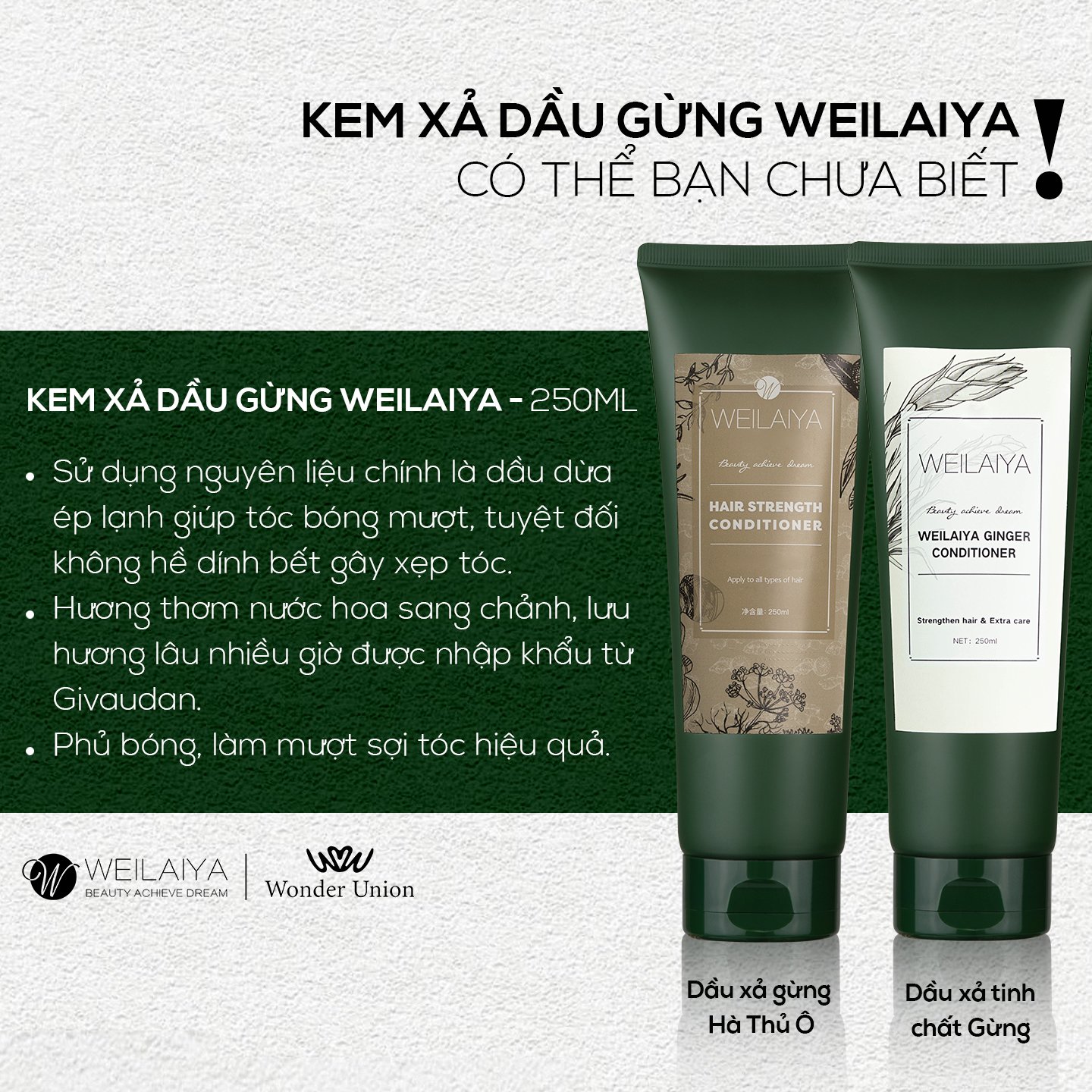 Dầu xả gừng hà thủ ô Weilaiya giúp tóc mềm mượt và mang hương nước hoa từ Givaudan cho hương thơm nồng nàn, quyến rũ. Kết hợp dầu xả cùng dầu gội gừng hà thủ ô của Weilaiya giúp tối ưu khả năng nuôi dưỡng và kích mọc tóc.