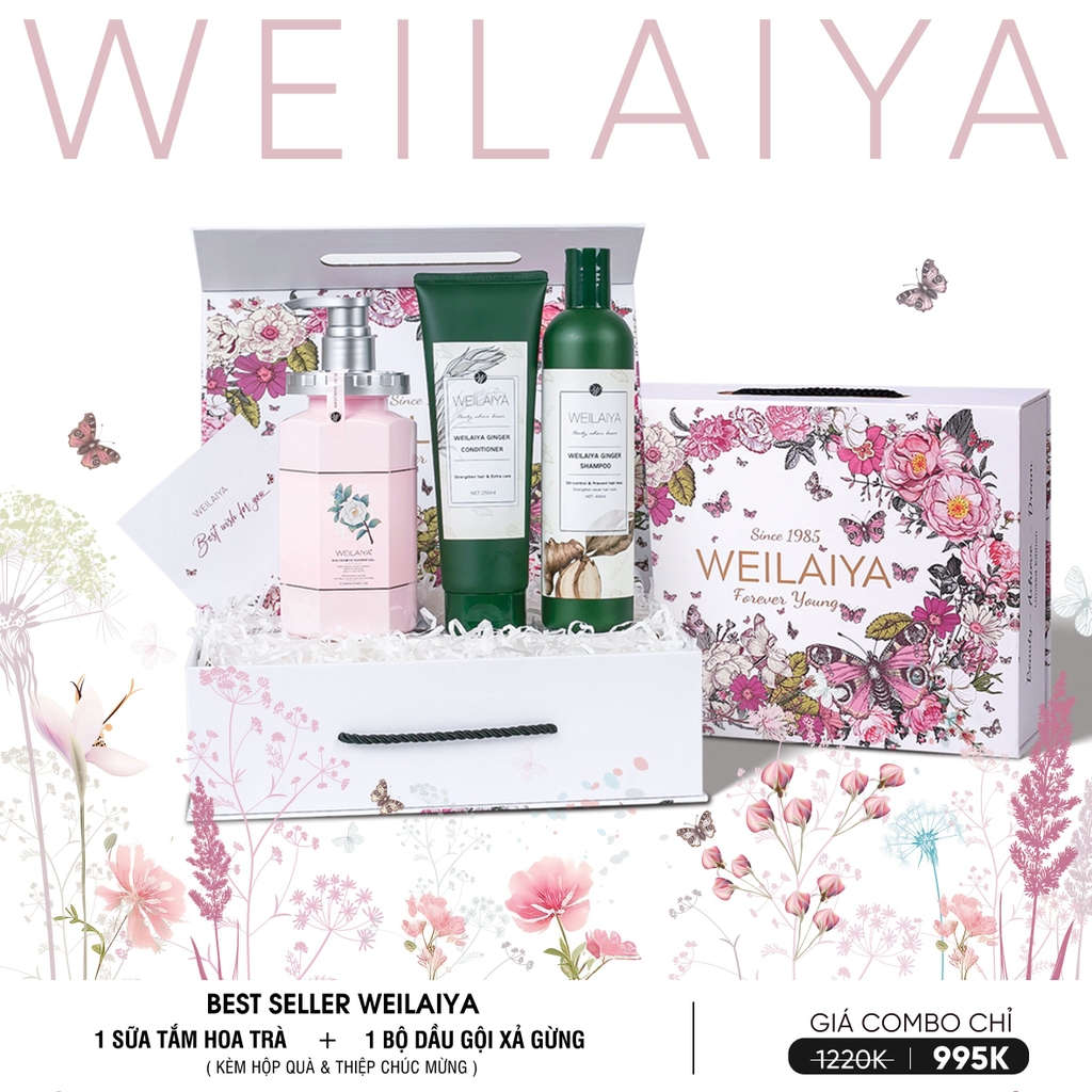 SET QUÀ TẶNG DẦU GỘI XẢ GỪNG WELAIYA + SỮA TẮM TRẮNG DA HOA TRÀ CAMELLIA WEILAIYA GỒM: