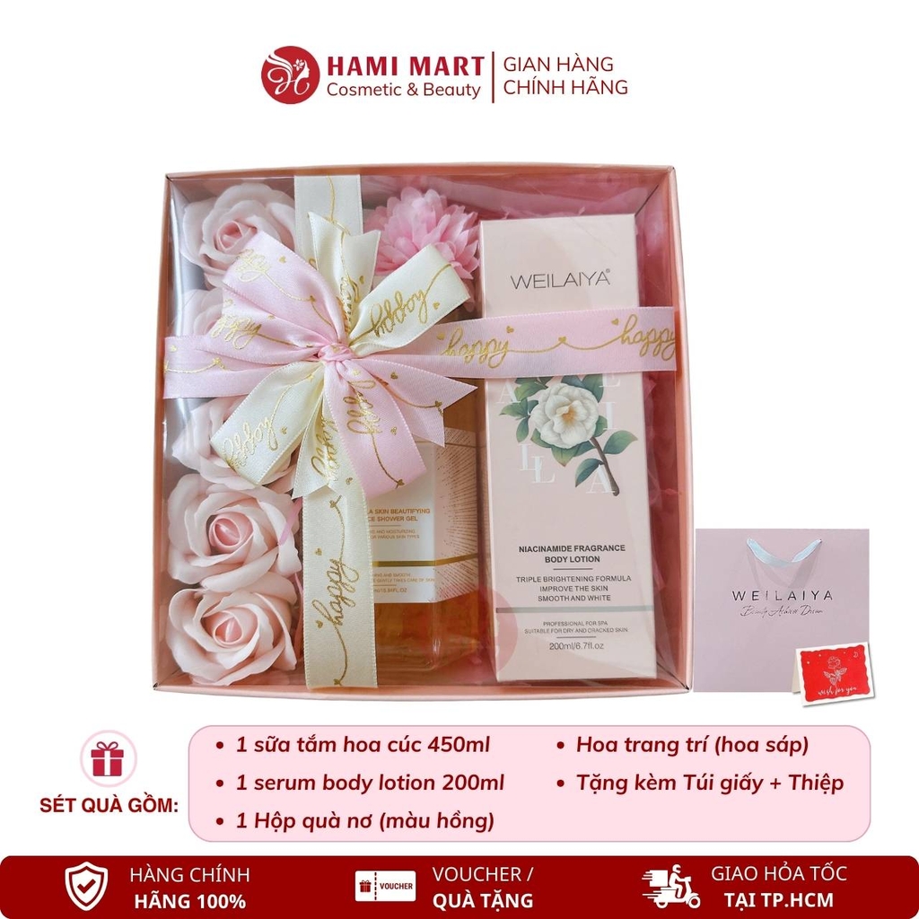 [Hộp Hồng] Sét Quà Sữa Tắm Hoa Cúc 450ml + Body Lotion Weilaiya 200ml