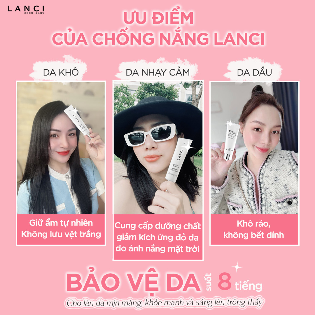 Đặc biệt, Kem Chống Nắng Lanci không chỉ bảo vệ da khỏi tác hại mặt trời tốt hơn và còn giúp lớp nền “ăn” da hơn, tiệp màu hơn đó!
