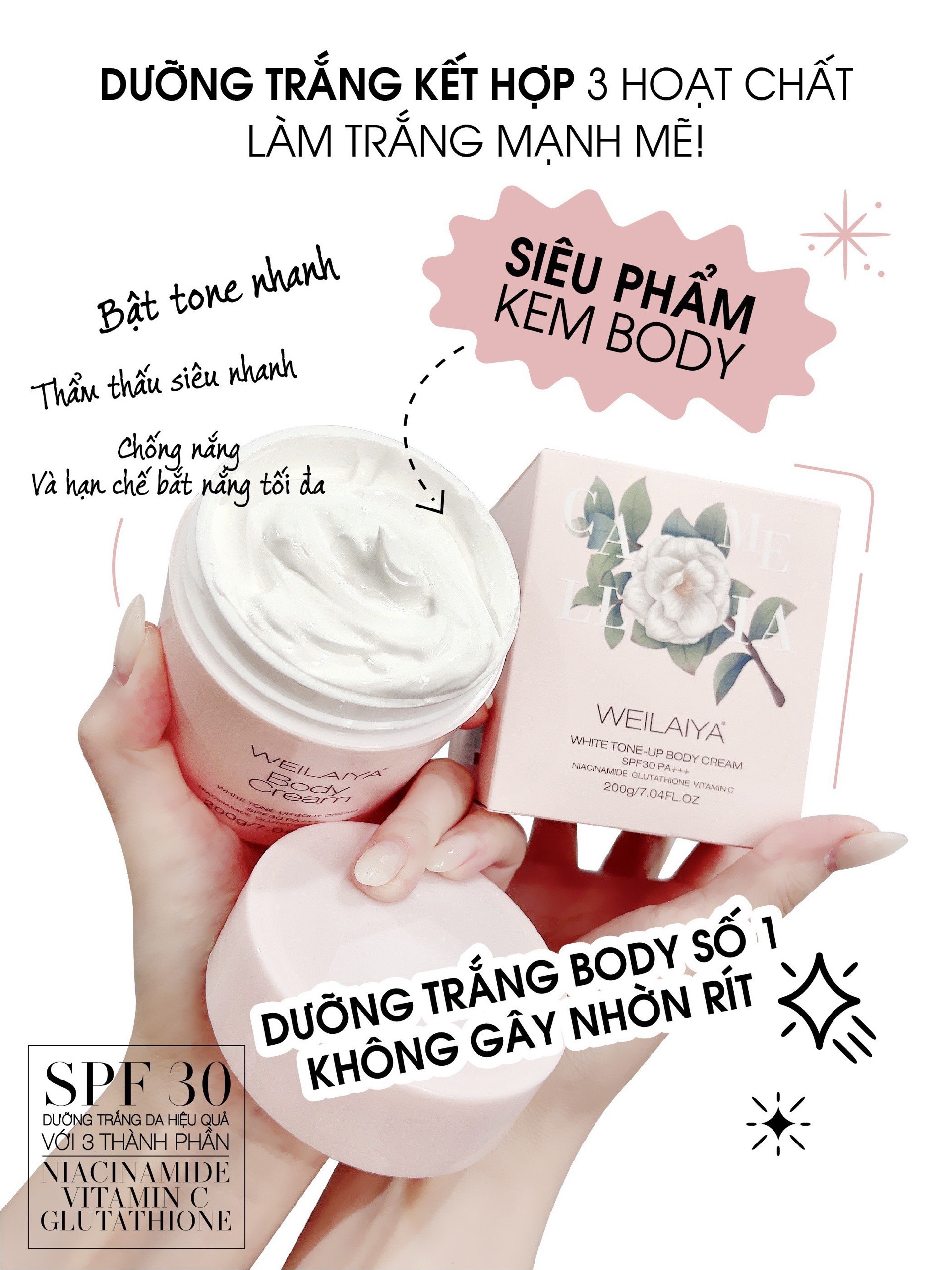 Nếu bạn đang bế tắc trên con đường dưỡng trắng body thì Weilaiya White Tone Up Body Cream chính là “vị cứu tinh” cho làn da của bạn.