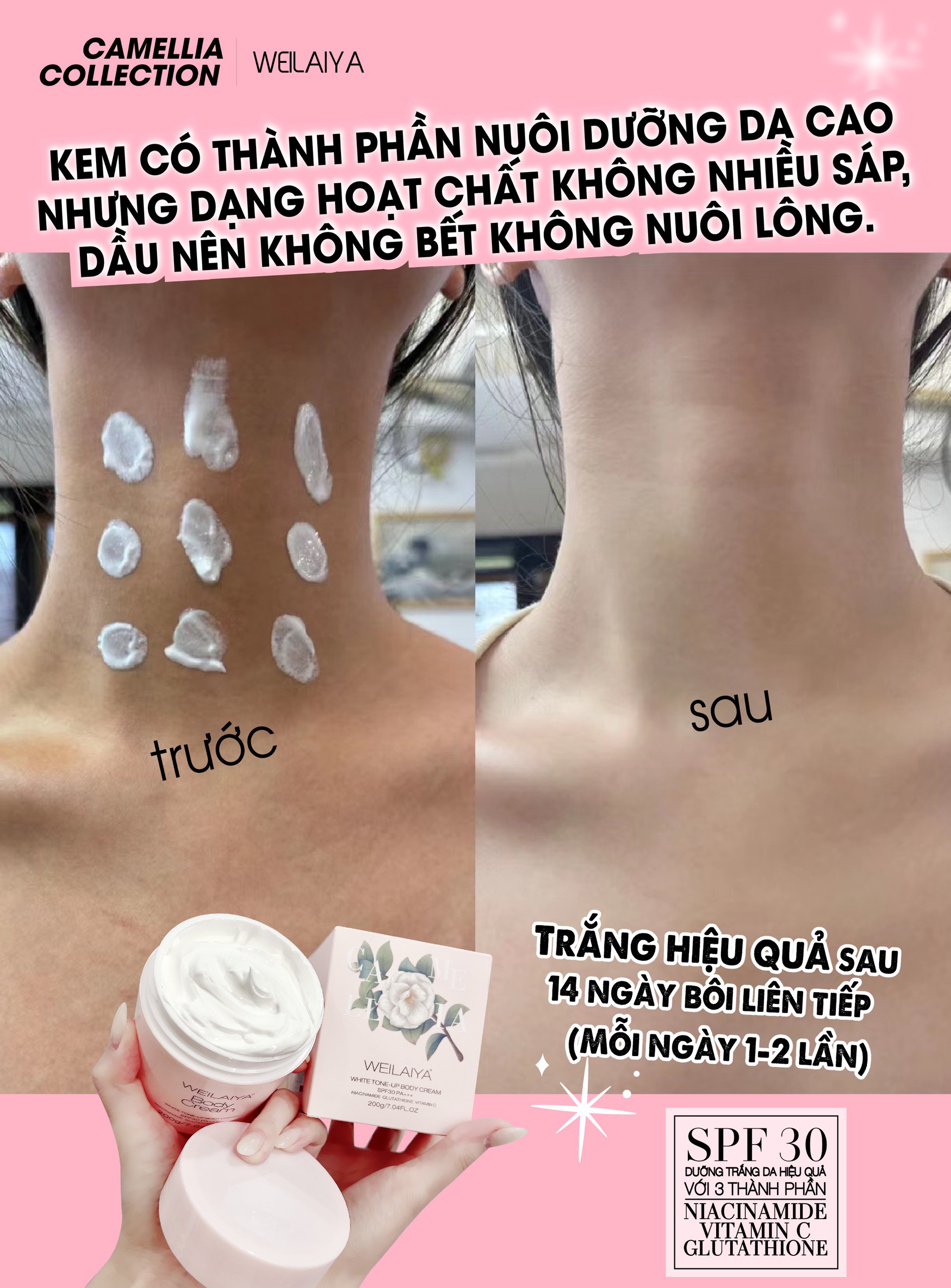 GIỚI THIỆU KEM KÍCH TRẮNG NÂNG TÔNG BODY CREAM CAMELLIA WEILAIYA
