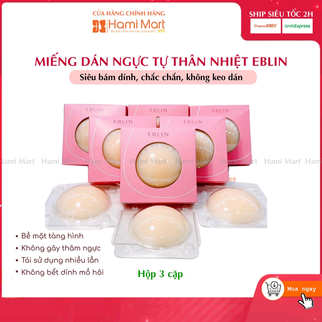 Miếng Dán Ngực Tự Thân Miếng Dán Ti Tàng Hình Độ Bám Dính Cực Cao EBLIN - Hộp 3 cặp
