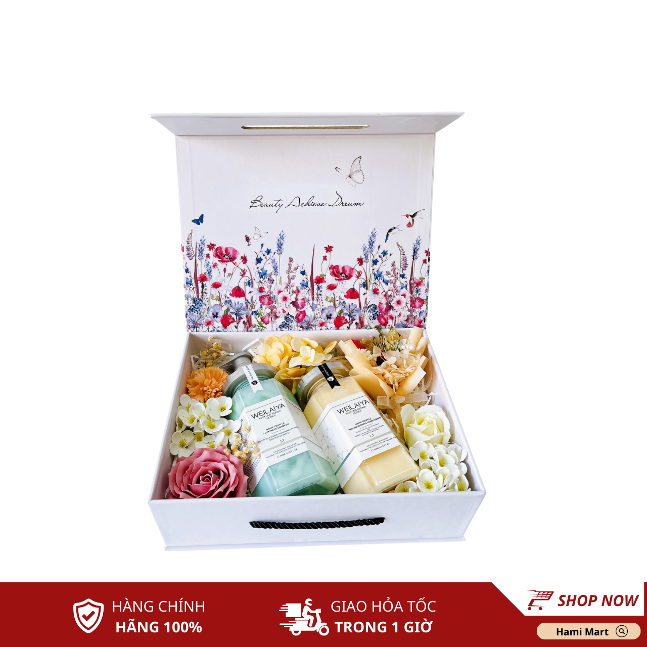 [Hộp Đỏ] Sét Quà 2 Chai Sữa Tắm Weilaiya (Hoa hồng + Hoa cúc)