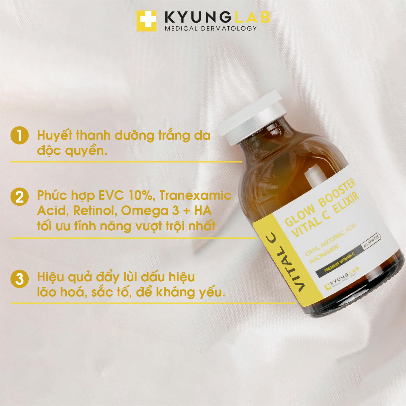 - Nếu bạn đang tự ti về làn da xỉn màu, thâm mụn và có dấu hiệu lão hóa thì Glow Booster Vital C Elixir Kyunglab chính là “vị cứu tinh” hoàn hảo.
