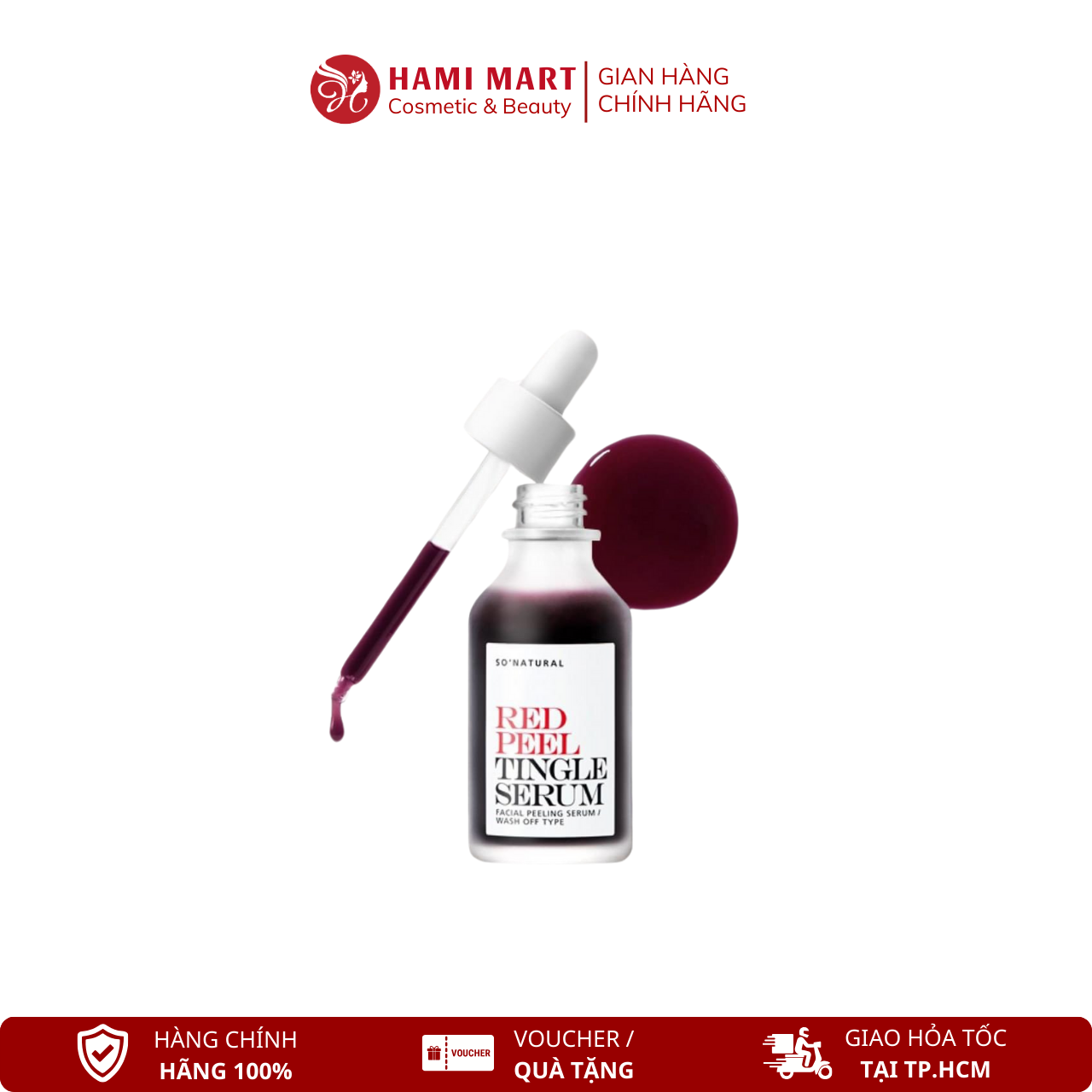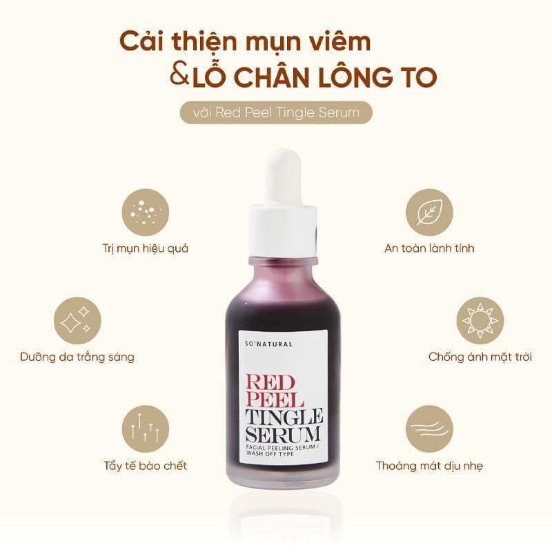 Tinh chất Giúp Tái Tạo Da Red Peel Tingle Serum là 1 trong những sản phẩm tẩy tế bào chết hóa học của thương hiệu So’Natural. Phương pháp tẩy tế bào chết hóa học này cho phép tinh chất len lỏi vào tận từng lỗ chân lông, đào thải tế bào chết, dầu thừa, bụi bẩn còn vương trên da, đồng thời kích thích sản sinh tế bào mới khỏe và hồng hào hơn