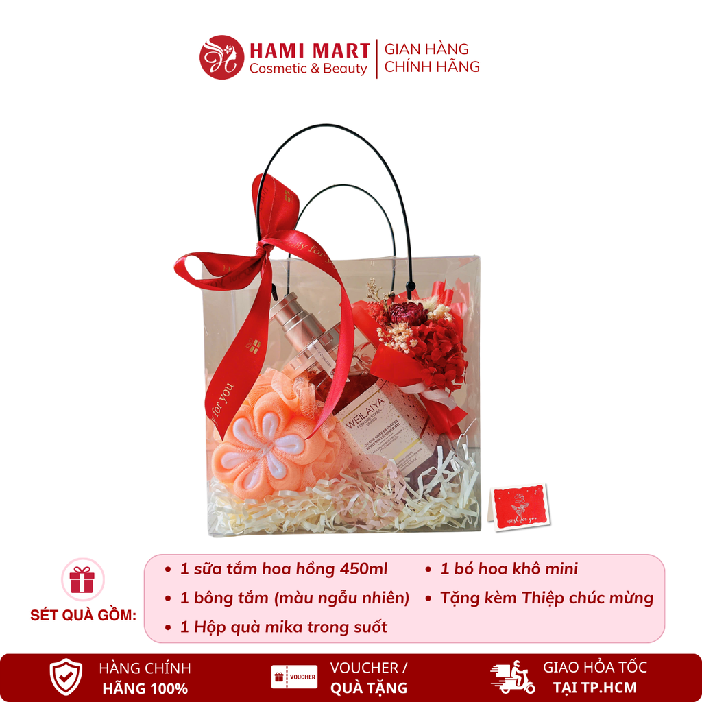 [Túi Mika Trong] Sét Quà Sữa Tắm Trắng Da Hoa Hồng 450ml