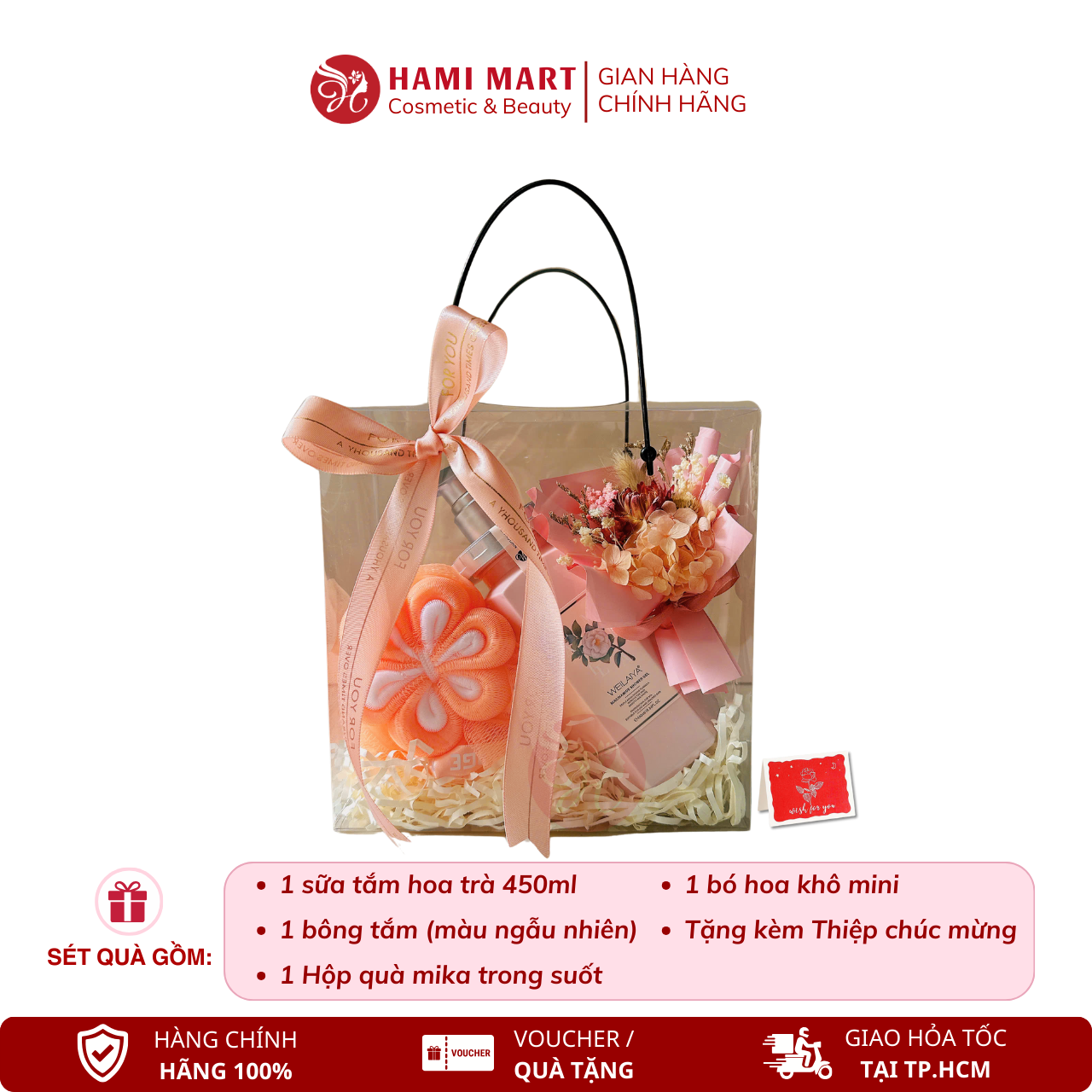 [Túi Mika Trong] Sét Quà Sữa Tắm Trắng Da Hoa Trà 450ml